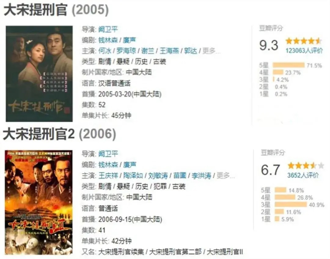 但《大宋提刑官》第一部太绝了,豆瓣评分比《神探狄仁杰》和《少年包青天》系列都要高,而且《大宋》第一部里深刻揭露了宋王朝官场政治上的黑暗面目,即使换到当下也非常具有借鉴意义!