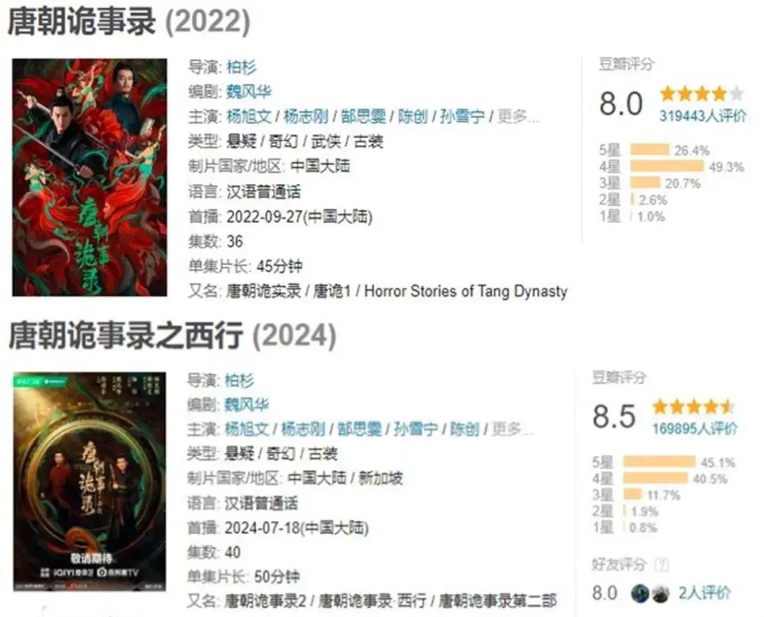 《唐朝诡事录之西行》播出后,没让观众失望,整体上比第一部有了更大的提升,豆瓣评分也高达8.5,也是近十多年来极少见的续集超越前作的电视剧作品。