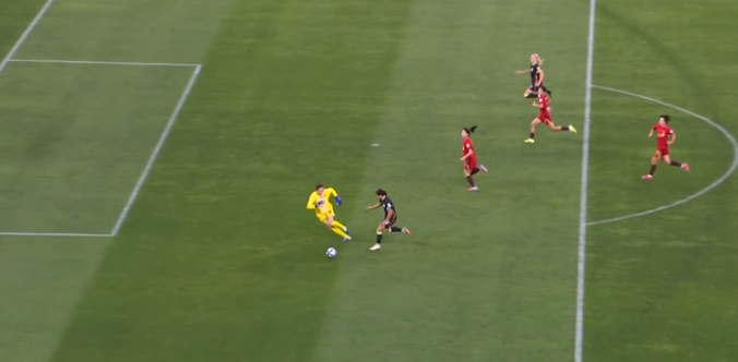 但是在彭诗梦出击时明显不够坚决,出击到一半结果退了,结果她被科尔轻松晃过,最终打空门得手。