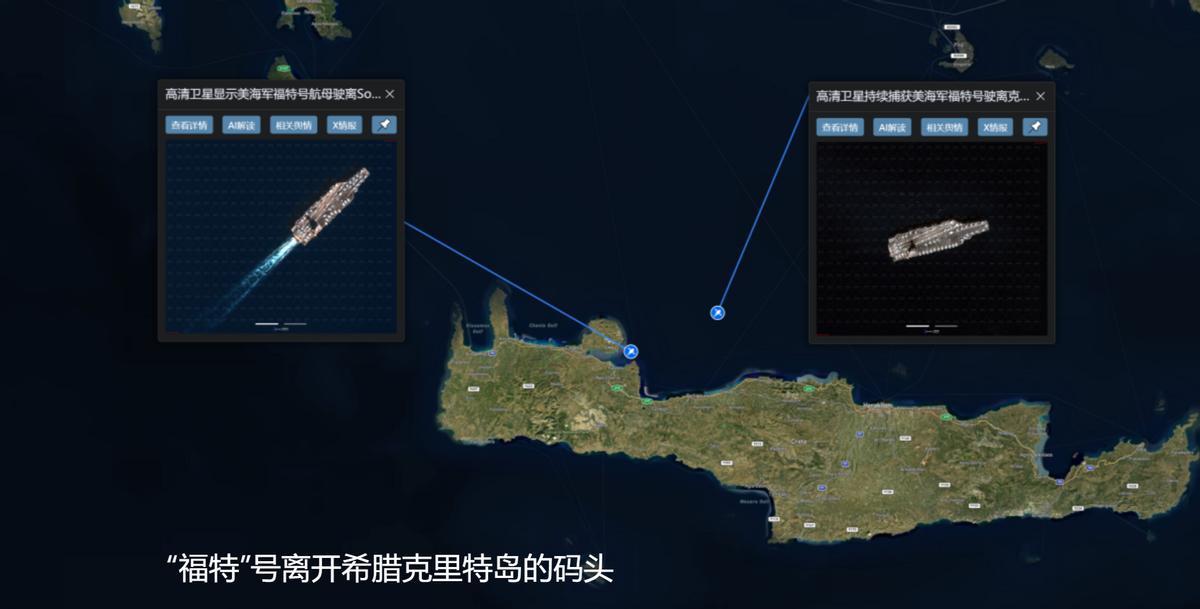 同时,这家公司的卫星拍到了离开希腊克里特岛港口之后,前往以色列沿海的“福特”号航空母舰。