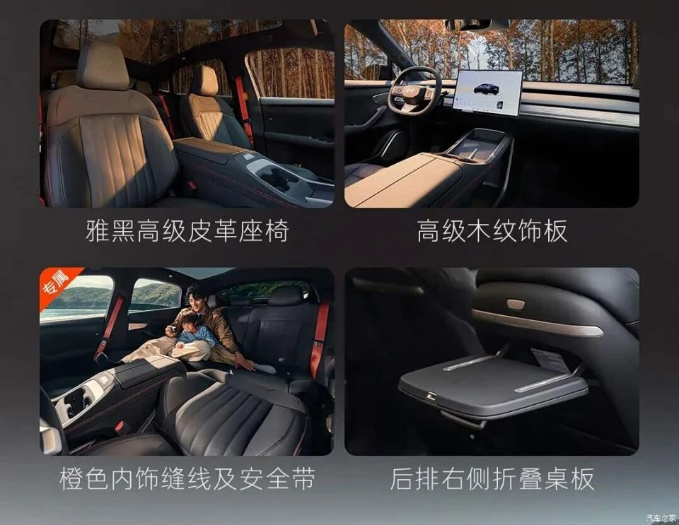作为特别版,它在颜值上直接拿捏了运动感,不用额外改装就能开出专属范儿,这一点比需要选装黑化套件的小米YU7更省心。 核心配置上,黑骑士版基于后驱版本打造,电机最大功率326马力,峰值扭矩305牛·米,动力比小米YU7入门版的320马力略胜一筹,起步加速更轻快。内饰延续普通版的豪华布局,黑色高级皮革座椅搭配木纹饰板、橙色缝线与安全带,运动感与质感兼备,配置与普通版保持一致,智驾、娱乐等功能完全够用。